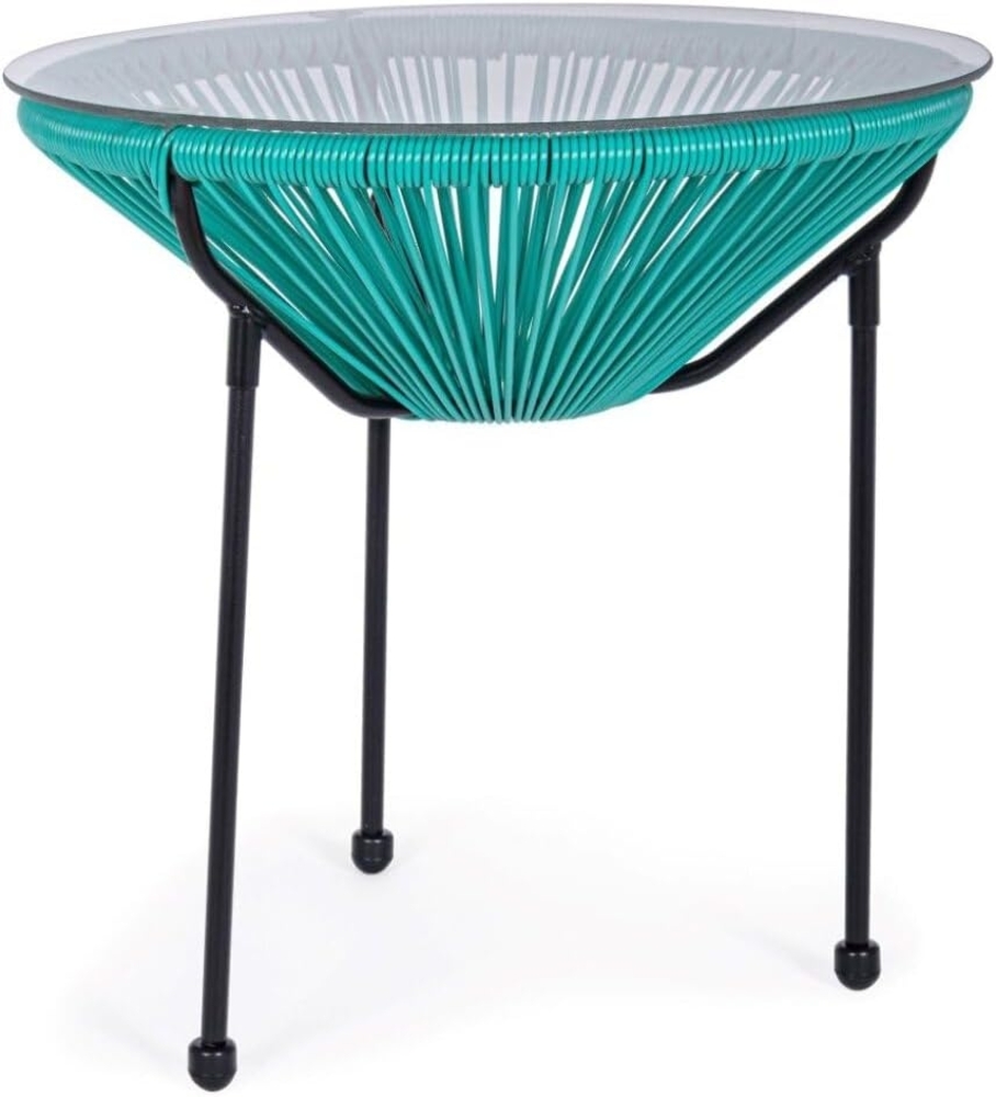 Der Beistelltisch Parker mit einer eleganten Glasplatte in Türkis ist die perfekte Ergänzung für Ihren Garten. Sein modernes Design wird durch das stabile Stahlgestell mit einer sandgestrahlten Epoxid-Pulverbeschichtung unterstützt. Die Tischplatte aus 5 mm gehärtetem Glas und die Kunstfaser-Korbstruktur verleihen dem Tisch einen einzigartigen Look. Die Materialien sind speziell für den Outdoorbereich konzipiert, was Langlebigkeit und Wetterbeständigkeit garantiert.