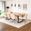 Unser Esstisch AVENCIA in der eleganten Farbe Fishbone Oak bietet mit seinen großzügigen Maßen von 240 x 120 x 76 cm ausreichend Platz für gesellige Runden. Die Tischplatte aus hochwertiger mitteldichter Holzfaserplatte (MDF) und der stabile U-Fuß sorgen für Langlebigkeit und eine sichere Basis. Die acht Esszimmerstühle NODA mit weicher Polsterung garantieren hohen Sitzkomfort und sind pflegeleicht.