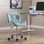 Der HNNHOME Eris Schreibtischstuhl vereint modernen Komfort und stilvolles Design. Mit einem gepolsterten Samtbezug und einem ergonomischen, diamantförmigen Design unterstützt er eine gesunde Sitzhaltung. Der höhenverstellbare Drehstuhl mit einem stabilen Metallrahmen bietet eine Tragkraft von bis zu 120 kg und ist ideal für Zuhause, Schlafzimmer oder Büro. Die Montage erfolgt schnell und unkompliziert ohne zusätzliches Werkzeug.