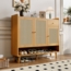 Flieks Schuhschrank 3 Rattan-Türen und Schubladen (Maße: B120/H106/T35 cm, 1-St, mit Metallgriffen und Massivholzbeinen) Schuhkommode Schuhregal mit verstellbaren Einlegeböden Holzschrank Bild 1