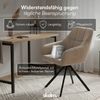 Der weiche Velvet-Bezug in der Farbe Macchiato verleiht den Stühlen eine warme, moderne und zugleich elegante Ausstrahlung. Das strapazierfähige Polyestergewebe ist pflegeleicht, atmungsaktiv und besonders angenehm im Gebrauch – perfekt für den täglichen Einsatz.