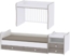 Das Lorelli 'Combo' 2-in-1 Kombibett in Weiß ist ideal für Geschwisterkinder. Es besteht aus einem Babybett mit Schaukelfunktion, das auf dem Jugendbett platziert werden kann. Die Multifunktionskommode mit Wickelbrett und zwei Schubladen kann links oder rechts vom Bett angebracht werden. Das Bett ist umbaubar und entspricht den europäischen Sicherheitsnormen.