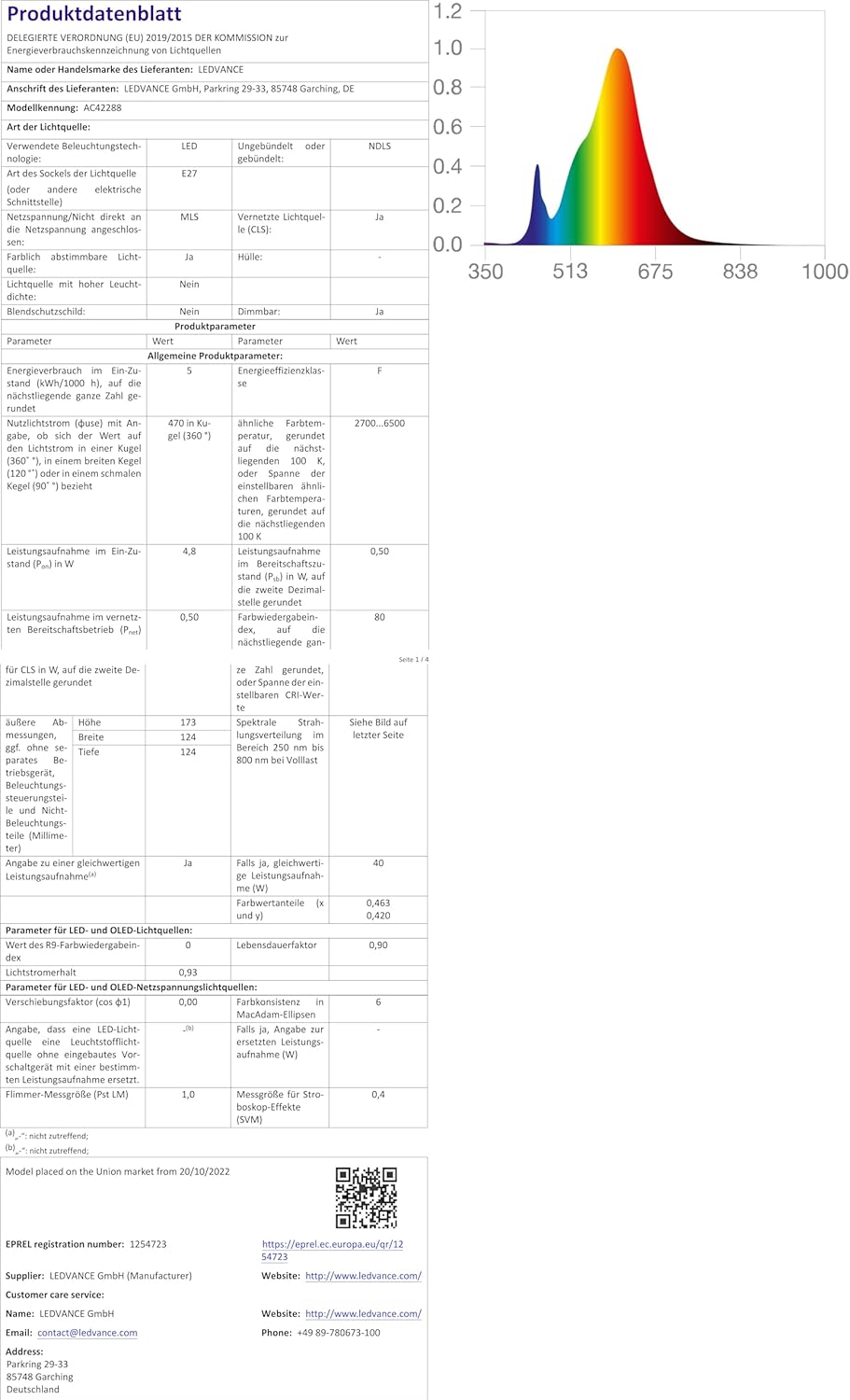 Die LEDVANCE SMART+ WIFI LED ist eine intelligente LED-Lampe im Vintage-Design mit einem transparenten Gehäuse aus hochwertigem Echtglas. Mit einem Durchmesser von 125 mm und einem E27-Sockel bietet sie dimmbares, dynamisches farbiges Licht sowie weißes Licht mit einer Farbtemperatur von 2700 bis 6500 K. Die Lampe hat eine Leistung von 4,8 W, eine Helligkeit von 470 lm und eine Lebensdauer von bis zu 15.000 Stunden. Sie kann über Wi-Fi, eine Smartphone-App oder Sprachassistenten gesteuert werden.