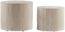Der Couchtisch «Almeria Beistelltisch» von SalesFever ist der ideale Partner für Ihr Sofa und schafft eine stilvolle Wohlfühlzone in Ihrem Wohnzimmer. Mit einer ovalen Tischplatte in Travertinoptik aus langlebigem MDF, das sich nicht verzieht, ist dieser Tisch pflegeleicht und einfach zu reinigen. Das Set besteht aus zwei Tischen, die bereits montiert geliefert werden, sodass Sie sie sofort nutzen können.