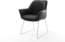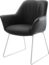 Esszimmerstuhl Keila-Flex mit Armlehnen Echt-Leder Schwarz Kufengestell Edelstahl