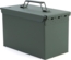 Die RAMROXX Transportbehälter Munitionskiste ist eine stabile und robuste Metallbox, ideal für die Aufbewahrung und den Transport von verschiedenen Gegenständen. Mit den Maßen 305 x 155 x 190 mm und einem Gewicht von ca. 2,5 kg bietet sie ausreichend Platz und Sicherheit. Die grüne Farbe und die spritzwassergeschützte Bauweise mit Gummidichtung machen sie besonders funktional.