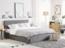 Elegantes Doppelbett 'ROCHEFORT' in Grau mit Lattenrost und hochklappbarem Bettkasten. Das luxuriös gepolsterte Bett aus Samtstoff bietet eine komfortable Liegefläche von 140 x 200 cm und ist ideal für kleine Schlafzimmer dank des großzügigen Stauraums. Der integrierte Lattenrost mit 24 Federholzleisten sorgt für optimale Gewichtsverteilung und höchsten Liegekomfort.
