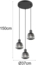 Die 3-flammige Cluster Pendelleuchte TARIFA von Trio Leuchten vereint modernes Design mit einem Hauch von Retro. Mit einem Durchmesser von 37 cm und chrombedampften Glasschirmen, die im eingeschalteten Zustand rauchfarbig schimmern, wird sie zum Blickfang in jedem Raum. Der Baldachin aus schwarzem Metall ergänzt das stilvolle Erscheinungsbild. Passen Sie die Abhängungen individuell an, um der Leuchte eine persönliche Note zu verleihen. Ideal für Wohnzimmer oder Esstisch.