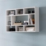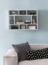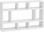 Modernes Wandregal in Weiß aus Holz mit neun Regalfächern in verschiedenen Größen. Mit einer Breite von 75 cm, einer Höhe von 51 cm und einer Tiefe von 16 cm bietet es großzügigen Stauraum für Dekoration, Bücher und mehr. Die kratzfeste und wasserabweisende Melaminharz-Beschichtung sorgt für Langlebigkeit und einfache Pflege.