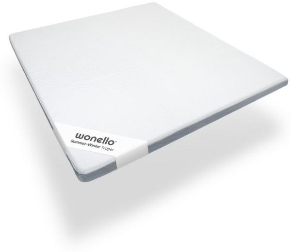 Der wonello Premium Sommer-Wintertopper ist die ideale Matratzenauflage für Ihr Boxspringbett. Mit einer Höhe von 9 cm bietet er sowohl eine kühlende Sommerseite als auch eine kuschelige Winterseite. Hergestellt aus Gelschaum, sorgt dieser Topper für einen angenehmen Schlafkomfort das ganze Jahr über. Der Bezug ist waschbar und lässt sich dank des 4-seitigen Reißverschlusses leicht abnehmen.