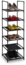 Mit diesem schmalen Schuhregal gehört das Chaos von herumliegenden Schuhen der Vergangenheit an. Es bietet Platz für ein Paar Schuhe pro Ebene und ist ideal für Flur, Schlafzimmer oder kleine Nischen. Das praktische Stecksystem ermöglicht einen schnellen Aufbau, während das schlichte Design aus einem schwarzen Metallgestell und grauen Stoffablagen vielseitig einsetzbar ist.