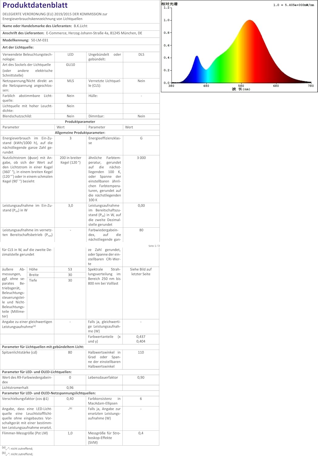 - Lichtfarbe: 3.000 Kelvin (warmweiß)