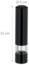 Elektrisches Salz- und Pfeffermühlen Set 10047453 im praktischen 2er Set für aromatische Gerichte. Ausgestattet mit einem robusten Keramikmahlwerk und einem stufenlos einstellbaren Mahlgrad, bieten diese Mühlen eine einfache Handhabung per Knopfdruck. Das moderne Design in Schwarz macht sie zu einem stilvollen Blickfang in Ihrer Küche.