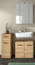 Details: Badmöbel Set Cover GE70155-20 Badkombination 3-teilig Front MDF Artisan Eiche tiefgezogen, ohne Umleimerkanten Korpus Artisan Eiche Melamin Gesamtmaß B/H/T ca.: 105/185/30 cm bei 15 cm Typenabstand bestehend aus: Badkommode B/H/T ca.: 30/80/30 cm 1 Schubkasten mit Vollauszug 1 Tür 1 Einlegeboden / 2 geschlossene Fächer Tür links oder rechts zu befestigen Spiegelschrank B/H/T ca.: 60/70/18 cm 3 Spiegeltüren 4 Einlegeböden / 6 geschlossene Fächer 2 breite Einlegeböden / 3 geschlossene Fächer Tür mittig links oder rechts zu befestigen Waschbeckenunterschrank B/H/T ca.: 60/54/30 cm 2 Türen 1 breiter Einlegeboden / 2 geschlossene Fächer Siphonausschnitt T/B ca. 240/70 mm LED Spiegellampe bitte dazu bestellen LED Spiegellampe mit Steckdose dazu bestellen: LED-Beleuchtung Set 1: 6,0 Watt / 400 Lumen, Kelvin 5000 IP44, Spritzwassergeschützt mit Steckdose und Schalter (Multibox) im Schrank inkl. Zuleitung und Befestigungsmaterial Qualität: Moderne Badkombination in elegantem Design Front in stabilem MDF Artisan Eiche, tiefgezogen, dadurch keine Umleimerkanten und besserer Schutz gegen Feuchtigkeit Korpus mit strapazierfähiger Melaminbeschichtung Kommodentür kann links oder rechts öffnend befestigt werden, dadurch auch spiegelverkehrt oder einzeln stellbar Trapezförmige Griffleisten in schwarz Einlegeböden sind höhenverstellbar Metallscharniere und Metallschienen kugelgelagert FSC®-zertifizierter Holzwerkstoff, aus kontrolliert nachhaltiger Forstwirtschaft Viel Stauraum bei wenig Platzbedarf Pflegeleicht durch glatte Oberflächen, einfach feucht abwischen Das Badmöbelprogramm Cover bietet eine Vielzahl von Einzelmöbeln mit verschiedenen Stell- und Kombinationsmöglichkeiten LED Spiegellampe bitte dazu bestellen Lieferumfang: Zerlegt/Selbstmontage, inkl. bebilderte Aufbauanleitung Montage- und Befestigungsmaterial Dekoration, Beimöbel, Elektrogeräte,Waschbecken und Armaturen sind nicht enthalten Energieeffizienz optionale LED-Beleuchtung: Die Skala der Energieeffizienz reicht von G für geringste, bis A für höchste Effizienz Auf dieser Skala hat die LED-Beleuchtung den Wert G Ein Austausch der LED-Lampen in der Leuchte ist nicht möglich Hersteller Art.-Nummer XN-XZBSBB01
