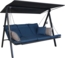Die moderne 3-Sitzer Hollywoodschaukel Lounge ist ein echtes Designerstück und zählt zu den High-End Hollywoodschaukel Modellen der Firma Angerer. Die ergonomisch geformte Sitzfläche besteht aus robustem und dennoch leicht flexiblem Textilene Gewebe. Dank der Kettenaufhängung kann die Sitz- und Liegeposition individuell verstellt werden. Je nachdem, welche Position gewünscht ist, können die mitgelieferten Karabiner in jedes beliebige Kettenglied eingehängt werden. Neben der klassischen Sitzposition kann die Schaukelbank in eine Liegefläche oder in die U-förmige Lounge-Position umgewandelt werden. Der Clou: trotz abgeklappter Lehne lässt es sich noch bequem Schaukeln. Jede der drei Sitzauflagen hat ein extra dick gepolstertes Kopfteil, das mit einer schönen Logo-Stickung verziert ist. Alle Kissenbezüge sind aus einem besonders weichen Stoff gefertigt und lassen sich dank der praktischen Reißverschlüsse einfach abnehmen und bei 30° C in der Maschine waschen. Vier Sofakissen sind ebenfalls im Lieferumgang enthalten. Das robuste Gestell der Hollywoodschaukel besteht aus verzinktem und pulverbeschichtetem Stahl. Das Sonnendach ist, genau wie die Sitzbespannung, aus wetterfestem Textilene Gewebe gefertigt und ebenfalls verstellbar. Durch Vor- oder Zurückschieben oder Neigen des Daches ist stets optimaler Sonnenschutz gegeben. Zur Selbstmontage, inkl. Montageanleitung. Made in Germany.