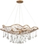 Die ausgefallene LED Pendelleuchte in Gold matt mit einem Durchmesser von 91 cm vereint modernes Design und hochwertige Verarbeitung. Der netzförmige Korpus aus gebürstetem Metall wird durch einen tropfenförmigen Echtglas Behang ergänzt, der an fallende Wassertropfen erinnert. Mit einer Abhängung von 305 cm eignet sich die Leuchte ideal für hohe Räume und kann individuell gekürzt werden. Sie ist mit sechs E14 Fassungen ausgestattet und wird mit sechs austauschbaren LED Leuchtmitteln (4 Watt, 470 Lumen, 2.700 Kelvin) geliefert, die dimmbar sind.
