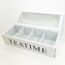 Die BOLTZE GRUPPE GmbH Dekokiste im Landhausstil ist die perfekte Lösung zur stilvollen Aufbewahrung Ihrer Teebeutel. Mit dem charmanten Aufdruck "Teatime" und vier praktischen Fächern bietet diese Teebox aus MDF/Holz ausreichend Platz für Ihre Teesorten. Der Deckel mit eingesetzter Glasscheibe sorgt für einen ansprechenden Blick auf den Inhalt.