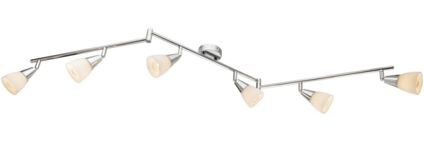 Deckenleuchte, verchromt, Opalglas, Spots beweglich, L 145 cm
