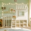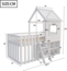 Dieses Kinderbett im Spielhaus-Design aus weiß lackiertem Massivholz bietet eine Liegefläche von 90x200 cm und kombiniert funktionales Design mit einem einladenden Rückzugsort für Kinder. Mit einem charakteristischen Dach und ausgeschnittenen Fenstern fördert es die Fantasie. Der große offene Stauraum unter dem Bett und die beweglichen Fächer sorgen für Ordnung. Die stabile Holzkonstruktion und abgerundeten Kanten gewährleisten Sicherheit und Komfort.