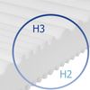 | Härtegrad | H2, H3, Mittelfest (H2), Fest (H3) | |