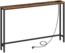 Der HOOBRO Konsolentisch in Vintagebraun ist die ideale Lösung für Foyers und Flure. Mit einer integrierten Steckdosenleiste und zwei USB-Anschlüssen bietet er eine praktische Ladestation für Ihre Geräte. Sein schmaler Aufbau mit kompakten Maßen von 120 x 15 x 79,5 cm macht ihn perfekt für enge Räume. Der Tisch kombiniert rustikales Braun mit klassischem Schwarz und sorgt für eine nostalgische Atmosphäre. Die Montage ist einfach und die Pflege unkompliziert.
