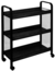 Der Servierwagen Gloria vereint Funktionalität und elegantes Design. Mit seinen kompakten Abmessungen von 66 x 85 x 26 cm und der schwarzen Farbgebung fügt er sich harmonisch in jedes Ambiente ein. Das pulverbeschichtete Stahlgestell sorgt für Stabilität, während die Ablageflächen aus Holzwerkstoff mit PVC-Dichtung und Papieroberflächen eine praktische Nutzung ermöglichen. Die integrierten Rollen erleichtern den Transport und die flexible Lagerung von Gegenständen.