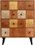 Diese Kommode aus massivem Akazienholz (60 x 30 x 75 cm) vereint Vintage-Charme mit praktischer Funktionalität. Die honigfarbene Oberfläche und die dekorativen Metalldetails in verschiedenen Farbtönen verleihen ihr einen luxuriösen Touch. Mit 4 geräumigen Schubladen bietet sie ausreichend Stauraum für Ihre persönlichen Gegenstände. Jedes Möbelstück ist ein Unikat, dank der einzigartigen Holzmaserung.