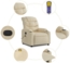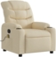 Lehnen Sie sich zurück und entspannen Sie sich in diesem cremefarbenen Massage-Relaxsessel. Mit einer manuellen Liegefunktion, die eine maximale Neigung von 135 Grad ermöglicht, und einer 6-Punkt-Vibrationsmassage bietet dieser Sessel ein komfortables Sitzerlebnis. Die dick gepolsterte Sitzfläche und die breiten Armlehnen sorgen für zusätzlichen Komfort. Praktische Getränkehalter und eine Seitentasche runden das Gesamtpaket ab.