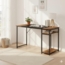 Der FurnitureR Schreibtisch mit Regal vereint Funktionalität und Stil. Mit einer großzügigen Arbeitsfläche von 120x60 cm und zwei praktischen Ablagen bietet dieser industrielle Computertisch aus Holz und Metall ausreichend Platz für Ihre Arbeitsmaterialien. Die stabile Konstruktion aus einem robusten Metallrahmen und MDF-Platten sorgt für eine hohe Tragfähigkeit. Der moderne Loft-Charakter in Schwarz-braun passt perfekt in jedes Home Office oder Arbeitszimmer.