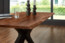 Moderner Esszimmertisch aus massivem Akazienholz in Nussbaum-Schwarz, mit einer Größe von 280 x 100 cm. Die natürliche Baumkante und das Spider-Gestell in mattem Schwarz verleihen dem Tisch einen industriellen Look. Die hochwertige, 26 mm dicke Tischplatte ist pflegeleicht versiegelt und macht jedes Exemplar zu einem einzigartigen Unikat. Ideal für verschiedene Einrichtungsstile.