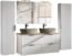 | Lieferumfang | 2x Waschtischunterschrank, 1x Waschtischplatte, 2x Keramik Aufsatz-Waschbecken, 1x Spiegel, 2x LED-Aufbauleuchte, 2x Hochschrank, Griffe in den Farben gold, chrom und schwarz |