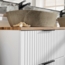 Die aufwändig gearbeiteten Fronten in Rillenoptik sind ein herausragendes Merkmal dieser Serie und betonen das elegante Erscheinungsbild. Die integrierte Türdämpfung und die Softclose-Systeme sorgen für geräuschloses Schließen der Türen und Schubladen, während die hochwertigen MDF-Fronten Langlebigkeit und Robustheit gewährleisten.
