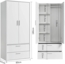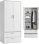Der mokebo Kleiderschrank Der Kleiderheld ist ein stilvoller und funktionaler Schrank, ideal für Ihr Schlafzimmer oder als Garderobenschrank. Mit zwei Türen und zwei Schubladen bietet er ausreichend Stauraum. Die variable Einlegeböden und die Kleiderstange ermöglichen eine individuelle Anpassung. Der Schrank ist aus hochwertigem Holzwerkstoff in Weiß gefertigt und überzeugt durch seine pflegeleichte Oberfläche.