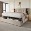 - Gepolstertes Kopfteil mit vier offenen Ablagefächern für Bücher und Kleinteile