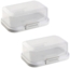 Praktische und stapelbare Butterdose aus hochwertigem, BPA-freiem Kunststoff. Mit sicherem Klickverschluss verhindert sie das Herausfallen von Lebensmitteln. Die Dosen sind platzsparend im Kühlschrank stapelbar und bieten ein modernes Design. Sie sind spülmaschinenfest und gefrierschrankgeeignet.