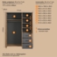 Front und Korpus des ca. 171 x 214 x 60 cm großen Schranks bestehen aus Holzwerkstoff im Dekor Artisan Eiche. Zudem gibt es an der Oberseite sowie an den drei Schubkästen eine Absetzung im Farbton Grau / Anthrazit. Vor Verschleiß schützt die Beschichtung mit widerstandsfähigem Melaminharz. Die Rückwand des Möbels ist weiß, außerdem wurden graue Kunststoffgriffe integriert.