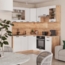 Lieferumfang1x Küchenblock, 1x Arbeitsplatte, 1x Montagematerial, 1x Montageanleitung (ohne Elektrogeräte, ohne Dekorationen)