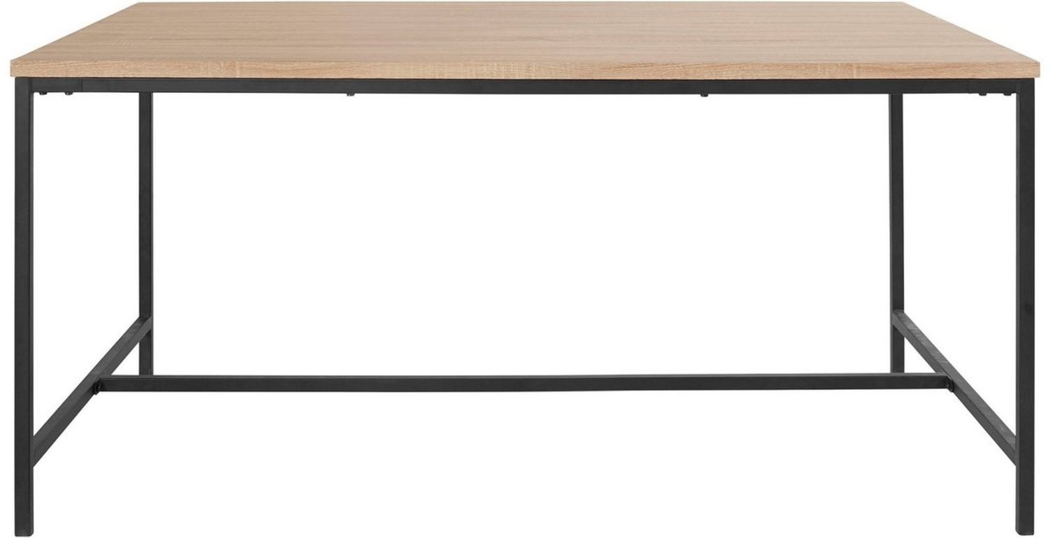 Robust, pflegeleicht und produziert: Mit diesen Attributen lässt sich der moderne Esstisch »Vadum« von andas im modernen Industrial-Design trefflich beschreiben. Die Optik ist durch die klaren Linien und den raffinierten Materialmix geprägt. Auf dem Untergestell aus schwarzem Metall ruht die Tischplatte in Holzoptik mit fühlbarer Holzstruktur. Die Gestaltung des Gestells in Form von Kufen sorgt für den charmanten Industrial-Touch. Rund um den Esszimmertisch kannst du deine Lieben für gemeinsame Mahlzeiten oder Spielerunden versammeln. Dank der Konstruktionsweise haben alle Personen eine große Beinfreiheit. Hergestellt wurde der pflegeleichte Tisch aus einem FSC®-zertifizierten Holzwerkstoff. Der moderne Esstisch »Vadum« von andas im modernen Industrial-Design ist in mehreren Größen erhältlich.