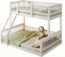 Das Etagenbett bietet zwei Liegeflächen von 90 x 200 cm und 140 x 200 cm, ideal für Kinder und Jugendliche. Es ist aus stabilem Kiefernholz gefertigt und verfügt über einen umlaufenden Rausfallschutz sowie einen Lattenrost aus Sperrholzplatte. Die maximale Belastbarkeit beträgt 100 kg für die untere und 150 kg für die obere Liegefläche. Der Aufbau ist nur wie in der Abbildung möglich.