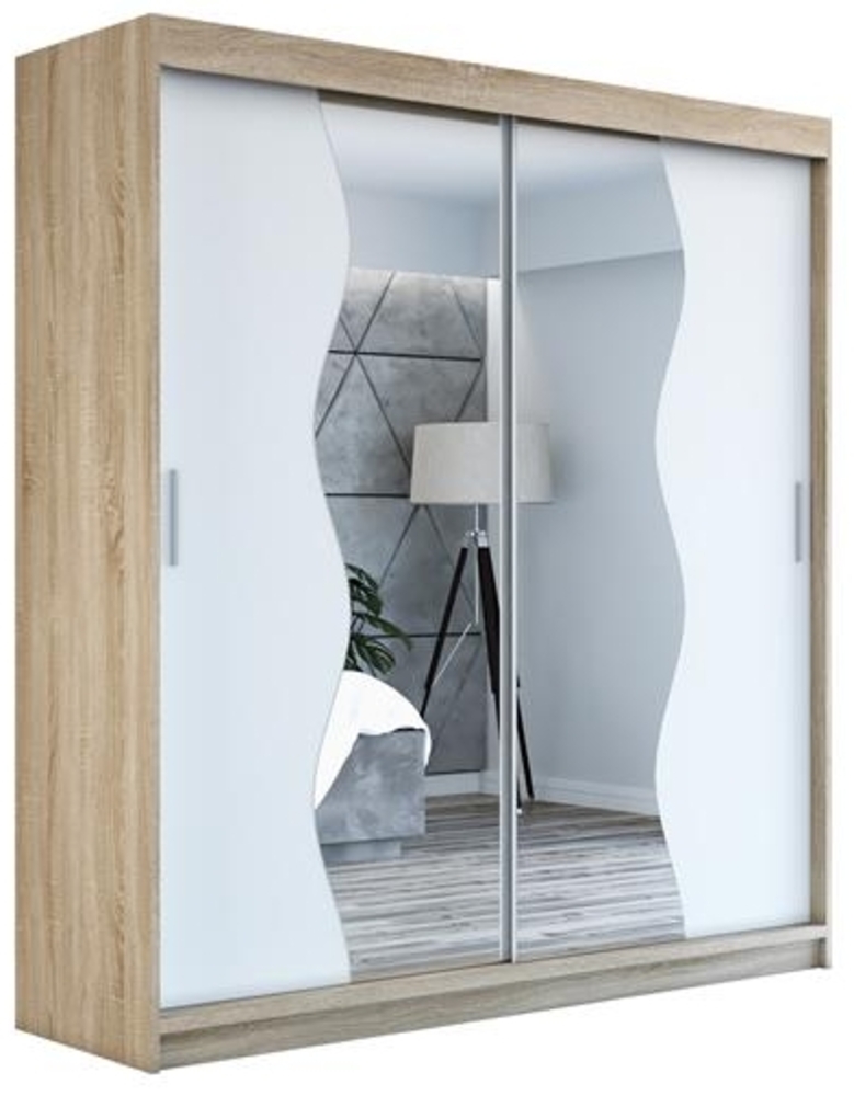 Schwebetrenschrank RIMA 2-trig Schrank 120 cm (mit Spiegel) Farbe: Sonoma , wei