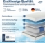 Die Premium 1000 Federn Taschenfederkernmatratze Gelschaum (80x200 cm H2 - 24cm) von AM Qualitätsmatratzen zeichnet sich besonders durch Ihren einzigartigen Aufbau aus. Ein 12cm hoher 7-Zonen-Taschenfederkern ist das Herzstück der Matratze, welcher sich durch die hohe Federzahl besonders gut dem Körper anpasst. Eine 6cm hohe Schicht aus Gelschaum (RG50) gibt unserer Matratze ein angenehm weiches Liegegefühl. Die Auswahl des Härtegrades wirkt sich nur auf die Drahtstärke des Federkerns aus, die weichen, anschmiegsamen Eigenschaften des Gelschaums bleiben unverändert! So können Sie durch den Härtegrad das „Finetuning“ am Taschenfederkern selbst vornehmen. Gelschaum ist ideal für Personen geeignet die auf Viscoschaum schnell schwitzen. Mit Bezug erreicht die 1000 Federn Premium Gelschaummatratze von AM Qualitätsmatratzen eine Höhe von 24 cm. Der Bezug aus hochwertigem TENCEL Lyocell mit versteppter Klimafaser (400 g/m²) ist feuchtigkeits- und temperaturregulierend. Die Oberfläche besteht zu 63% aus Polyester und zu 37 % aus TENCEL Lyocell. Durch den 4-seitigen Reißverschluss lässt sich der Bezug leicht abnehmen und bei 60 Grad waschen. Qualität Made in Germany - Wir fertigen komplett in Deutschland! Dieses Produkt ist Oeko-Tex Standard 100 zertifiziert (19. 0. 86717 Hohenstein HTTI). Alle verarbeiteten Materialien sind auf Schadstoffe geprüft und für Allergiker geeignet. Zufriedenheitsgarantie: Wir sind von unserer Qualität überzeugt und möchten auch Sie überzeugen! Deshalb: Bis zum 31. Januar probeschlafen - Wenn Sie nicht zufrieden sind, holen wir die Matratze kostenlos wieder bei Ihnen ab. Natürlich bei Erstattung des vollen Kaufpreises. Ohne Wenn und Aber!