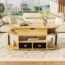 Moderner Couchtisch mit Hebefunktion und zwei praktischen Stoffschubladen. Der Tisch bietet nicht nur eine stilvolle Holzmaserung in Schwarz, sondern auch ausreichend Stauraum für Ihre Wohnaccessoires. Mit einer Gesamtgröße von 105 x 50 x 60 cm und einer Gewichtskapazität von 40 kg ist er sowohl funktional als auch ästhetisch ansprechend.