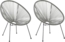 Trendy Spaghetti-Sessel im 2er Set in Dunkelgrau für Innen- und Außenbereiche. Diese bequemen Gartenstühle bestehen aus robuster, pflegeleichter Schnurbespannung aus PE Rattan und einem stabilen Stahlgestell. Mit einem luftigen Design und einer maximalen Belastbarkeit von 160 kg sind sie ideale Begleiter für entspannte Sommertage. Die Stühle sind nicht stapelbar und bieten eine Sitzhöhe von 41 cm.