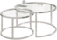 Lookway Couchtisch CIRI 2in1 GLASS ist ein elegantes Set aus zwei Couchtischen mit runden Glasplatten und einem verchromten Stahlgestell. Der größere Tisch hat einen Durchmesser von ⌀70 cm und eine Höhe von 47 cm, während der kleinere Tisch einen Durchmesser von ⌀50 cm und eine Höhe von 41 cm aufweist. Die Tische sind ideal für moderne Einrichtungen und bieten durch ihre unterschiedlichen Größen vielseitige Aufstellmöglichkeiten.