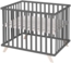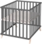 Das 4-eckige roba Laufgitter aus anthrazit lackierter Bio-Buche bietet eine kindgerechte und stabile Spielfläche. Es wird aus Massivholz, welches aus nachhaltiger Forstwirtschaft stammt, gefertigt und garantiert aufgrund stabiler Holzqualität lange Verwendbarkeit. Alle naturbelassenen Holzoberflächen, auf denen zahnende Babys beißen können, sind babyfreundlich veredelt. Der Laufstall ist ökologisch verarbeitet, babyfreundlich und splitterfrei. Aufgebaut bietet das 4-eckige roba Laufgitter eine große Spiel- und Kuschelfläche mit einer weich gepolsterten Stoffeinlage aus nachhaltiger Bio-Baumwolle im roba Design 'Lil Planet'. Mit weiterem Zubehör, z. B. einer Laufgittermatratze oder Nestchen, kann das Spielgitter zusätzlich ausgestattet werden. Für besondere Stabilität sorgen vier formschönen Massivholzfüße, die zur modernen Optik beitragen. Aufgrund der praktischen Größe von 75x100 cm passt das Spielgitter durch jede Standardtür und lässt sich mit wenigen Handgriffen von Raum zu Raum transportieren. Die rückenfreundliche 3-fache Höhenverstellbarkeit des Bodens lädt Eltern mit Freude zum Spielen mit ihren Kleinsten ein. Insgesamt hat der Baby-Laufstall die Aufbaumaße von 72 x 121 x 106 cm (Hx Bx T) und ist bis zu einem Gewicht von 15 kg belastbar. Alle verwendeten Materialien sind schadstoffgeprüft und zertifiziert. Zusätzlich werden sie regelmäßig während der Herstellung überprüft. Das Laufgitter wurde nach der DIN Norm EN 12227:2010 entwickelt und mit deutschem Buchenholz in Europa produziert. Die nachhaltige Bio-Textilauflage des Spielgitters ist nachhaltig produziert sowie nach GOTS (Global Organic Textile Standard) und Oeko Tex Standard 100 zertifiziert.