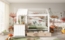 Bett 90x200 cm mit Schublade und abnehmbarem Nachttisch, Hausform aus Kiefernholz in Weiß‑Eiche