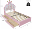 Prinzessinbett mit LED-Beleuchtung und Schubladen, ideal für Mädchen. Das Polsterbett bietet eine Liegefläche von 90x200 cm und ein höhenverstellbares Kopfteil von 125 cm bis 131 cm. Die RGB LED-Beleuchtung ist bequem über eine App steuerbar. Mit einer maximalen Belastbarkeit von 150 kg und einem stabilen Gestell aus Massivholz und MDF ist es sowohl funktional als auch modern.