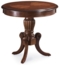 Dieser Couchtisch im romantisch barocken Design überzeugt durch seine elegante Form und lässt sich hervorragend mit anderen Möbeln kombinieren. Die runde Tischplatte aus mitteldichter Faserplatte (MDF) mit Furnier und das gedrechselte Holzgestell in dunklem Nussbaum verleihen dem Tisch einen stilvollen Charakter. Mit den Abmessungen von 60 cm x 60 cm x 55 cm ist er ideal für Ihr Wohnzimmer.