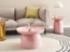 Moderner Couchtisch TORRENS in Pastellrosa aus Metall. Mit seinem industriellen Design und den erhöhten Kanten ist er nicht nur ein stilvoller Akzent in Ihrem Wohnzimmer, sondern auch praktisch. Der runde Tisch bietet Platz für Ihr Handy, Buch oder Kaffee und passt ideal neben ein Sofa oder einen Sessel.