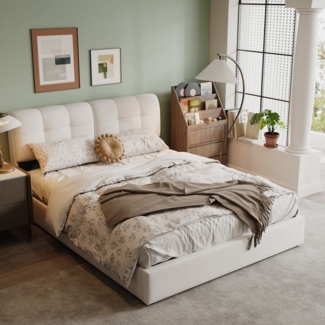 Gdood Stauraumbett Polsterbett, Bett 140/160x200 cm, Mit LED, Ladefunktion (1-tlg, 2 Steckdosen +2 USB- Anschlüsse, Federbelastetes Gerät Kopfteil), Multifunktionsbett, Leinen, 140x200 cm